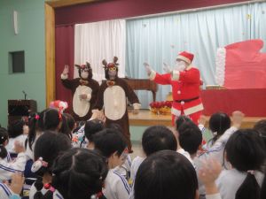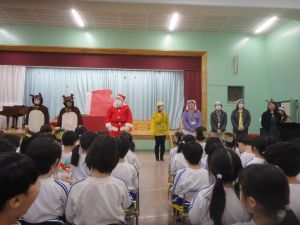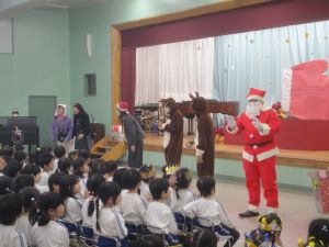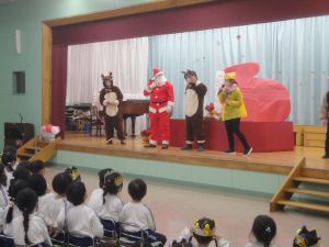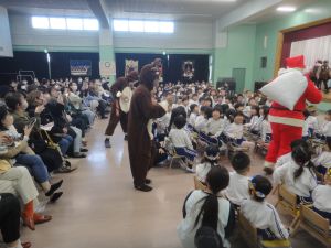 ハンドベルのキレイな響きと園長先生のお歌で、ホールの中は一気にクリスマスムード🎄