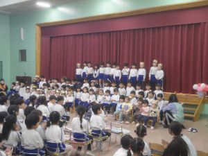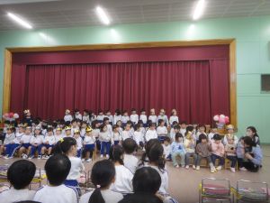 お誕生会は、8月~12月生まれのお友達が、前に出て全員お名前を呼ばれますよ。