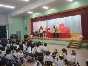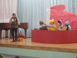今日は、先生たちが「てぶくろ」というお話の劇を見せてくれました。