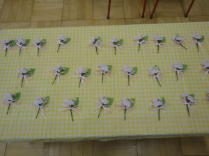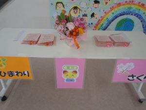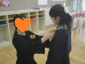 さくら組・ひまわり組のお部屋では、みんなの胸につけるコサージュがきれいに並べられていましたよ😊
