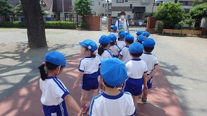 さて、歌声タイムの後には、年中すみれ組が近くにお散歩に出かけました。