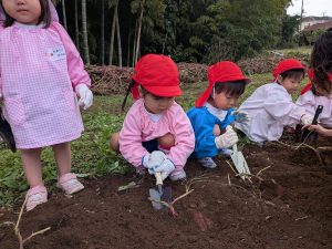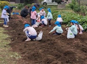 10月23日、お芋ほりをしました。芋のつるでリースも作りました。