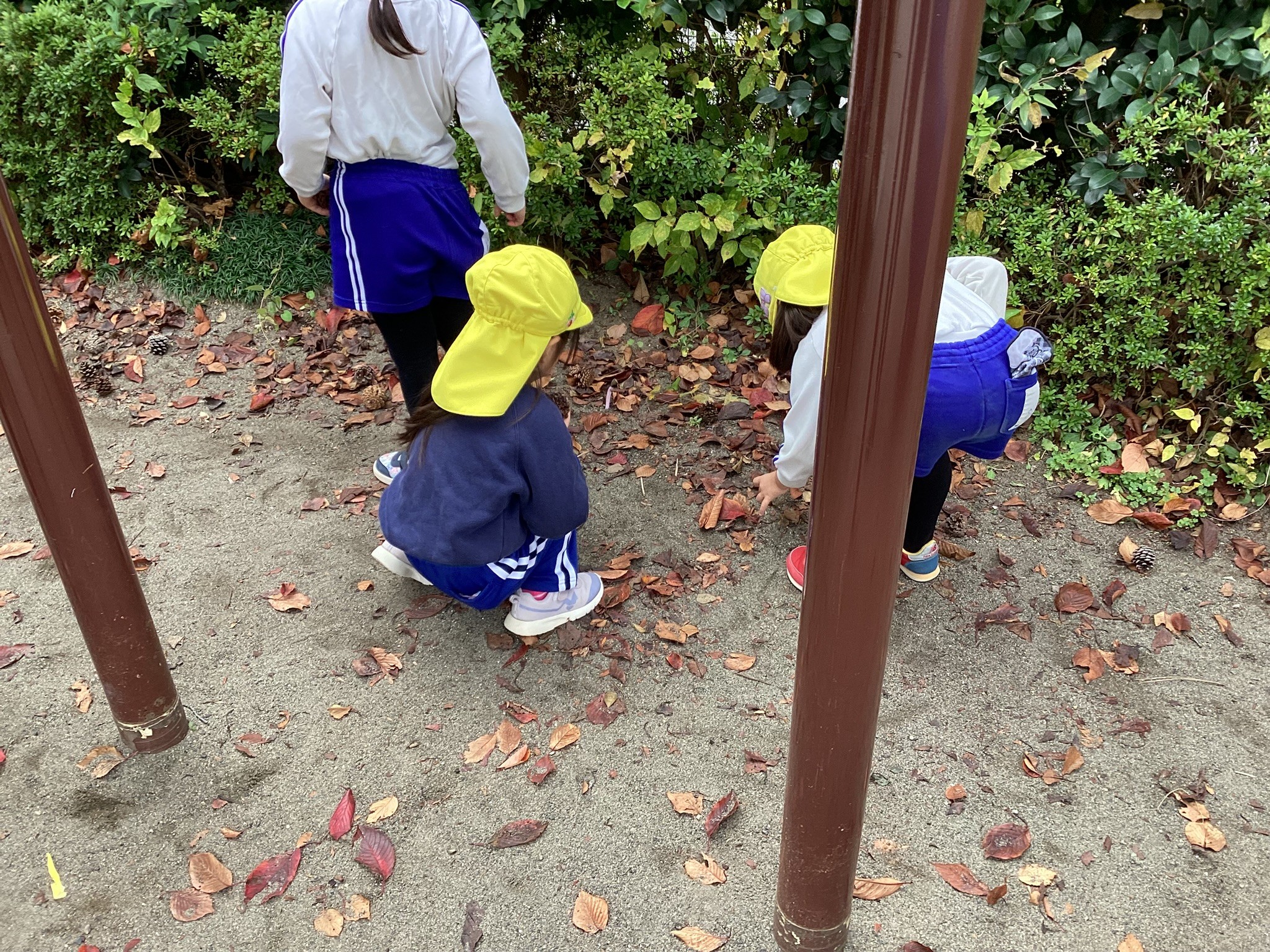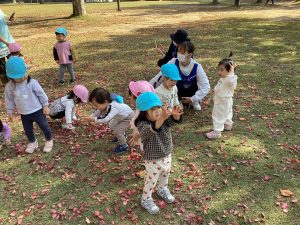 11月6日、りす組とうさぎ組、もくせい公園に行ってどんぐり拾いをしました。