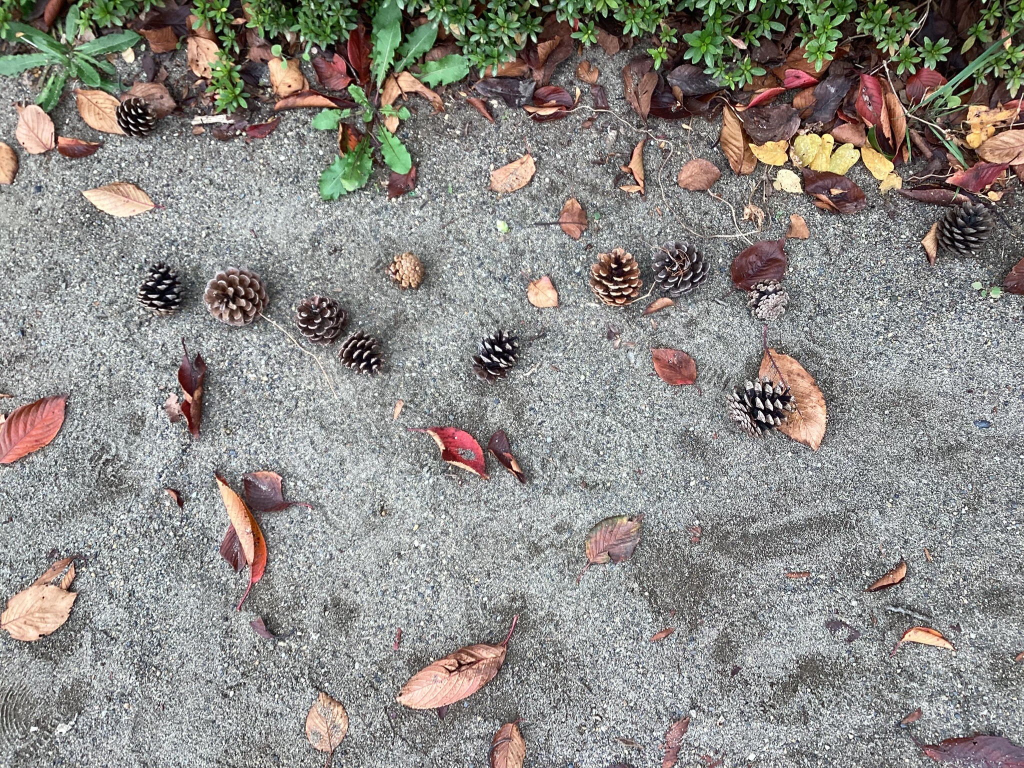11月18日、なぜか園庭にまつぼっくりが・・・