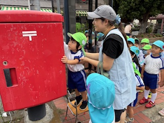 敬老の日に、祖父母の方に向けてお手紙を書き、近くのポストに自分たちの手で投函をしました!