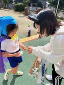 年長さんは自分たちで作ったマントも着用して🧹✨