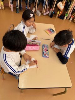 年長児はお手紙作りに挑戦❗訪問先の方へ感謝のお手紙をグループに分かれて描きました✏️