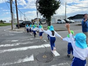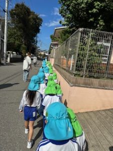 年長さんは年少さんと手を繋ぎ、年中さんは年中さん同士手を繋いで歩いていきました。