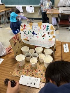 秋の自然を使ったゲームを沢山用意していてくれた小学生さん😊🍂