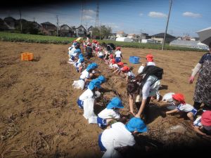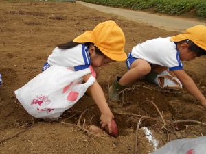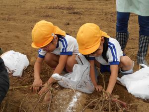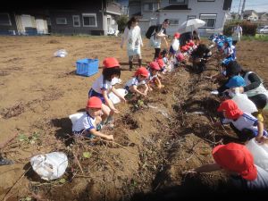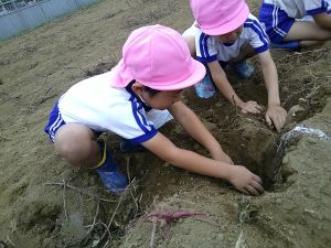 年中さんと年長さんは、さつまいも掘りに出かけました!