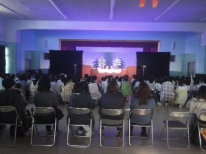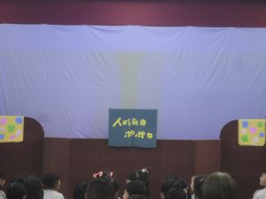 ホールはいつもの様子とは違っていて、大きな舞台ができていましたよ~!
