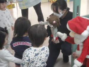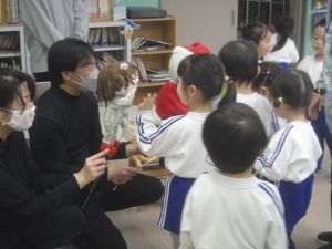 みんなお話に引き込まれ、サンタさんが困っていると、大きな声の助け舟が・・・!