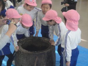 りす組さんが終わると、みんなで臼の中を覗いてみます。