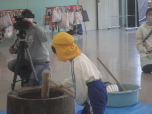 今日は、冬休みを前に幼稚園ではお餅つきを行いました!
