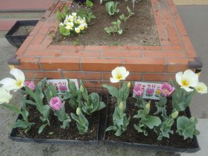 昨年度年長さんが植えてくれたちゅうりっぷの花も🌷、ようやく咲きだしました😊