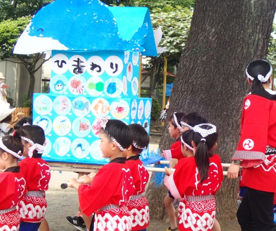 子ども達が楽しみにしていた夏祭りが、本日無事に行われました。 19日(土)の予定でしたが、雨のため延期に・・ 今日は朝からいいお天気です 幼稚園のキウイの木の上では、ハトがたまごをあたためながら子ども達を見守っていました。