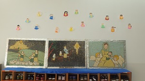 廊下には、全園児の個性豊かな作品の「天使」が飾られています。