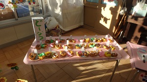 片づける前には、ひまわり組の子どもたちが、セールのワゴンに群がっていますよ