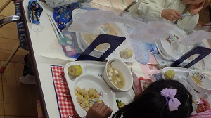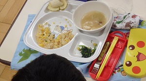 それからね、今日から始まった未就園児クラス「つくし組」でも今年度から希望があればみんなと同じ給食を食べられるようになりました☆彡(有料1食300円)。
