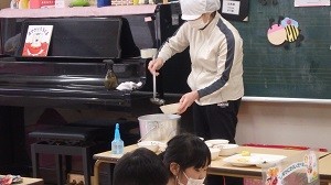 配膳も、今までならみんなにもお手伝いしてもらっていたのですが、給食の先生や担任の先生がやっています。