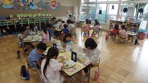 年長さんは、お家の方と一緒にお給食を食べるんだよね☆彡