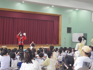 続いてゆいか先生は、みんなにクイズを出したり、小さい太鼓を出して音のキャッチボールをしたりしてくれました。