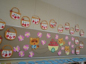 年長さんのお部屋は、森の中のよう・・🌲 フクロウやりすたちがとっても楽しそうに笑ってみています😊 年中さんのお部屋は・・・?