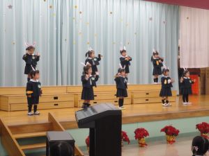 「うさぎ野原のクリスマス」をかわいい振り付けでとっても元気に歌いました🐇