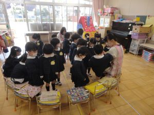 その後、クラスで丸くなって楽しいゲームが始まりそう・・・。