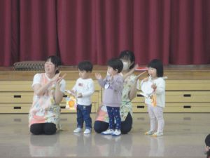 楽しい音楽に合わせてお膝に乗って楽しく体を動かしました!