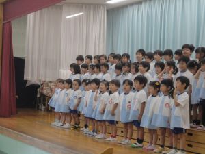 残暑の厳しい日が続いていますが、敬老の日を前に、幼稚園では、「祖父母のための歌発表会」を行いました。