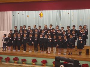歌発表会の当日は、保護者の方に観て頂くのですが、今日は幼稚園のお友達が観客の代わりです!