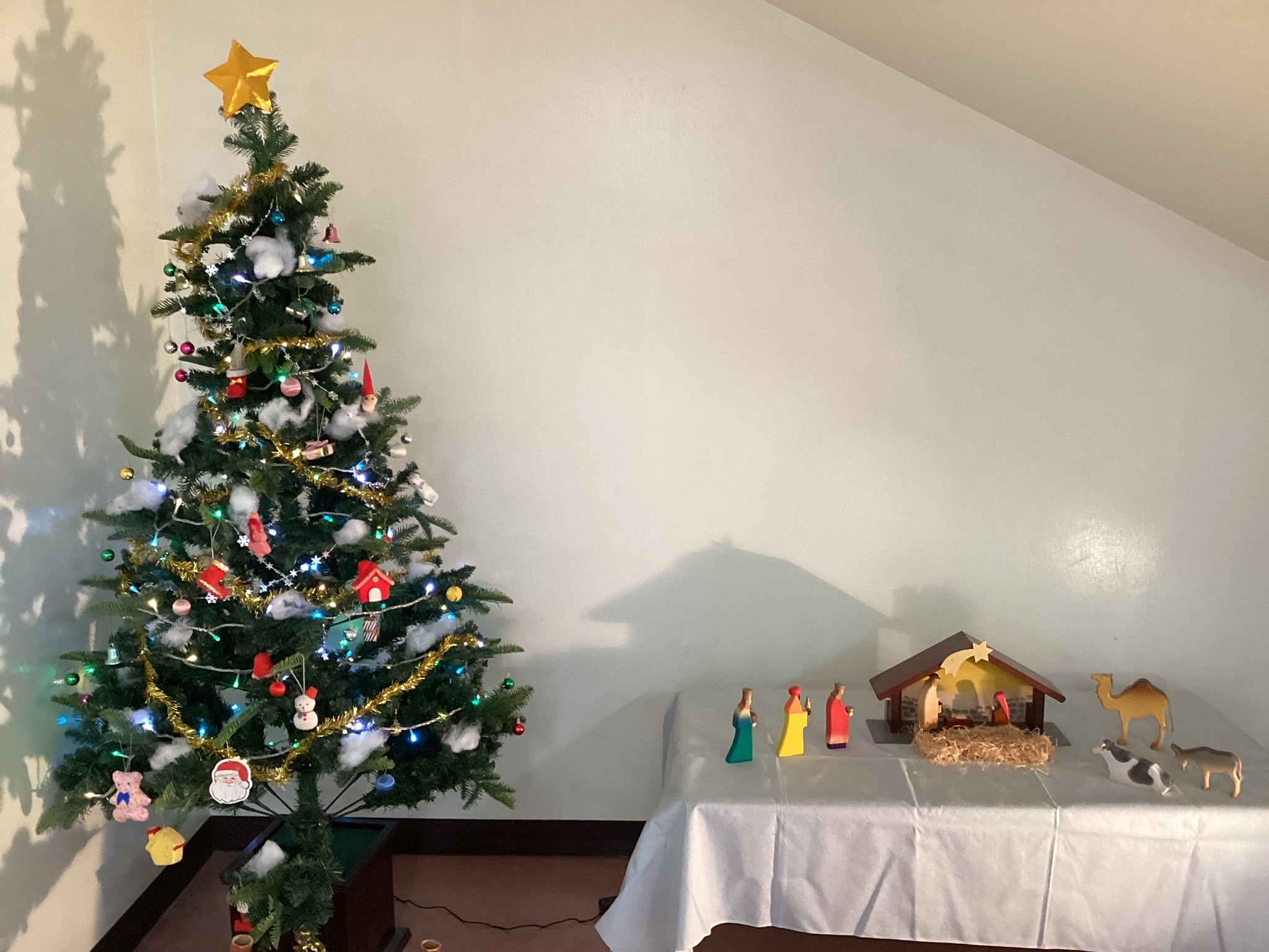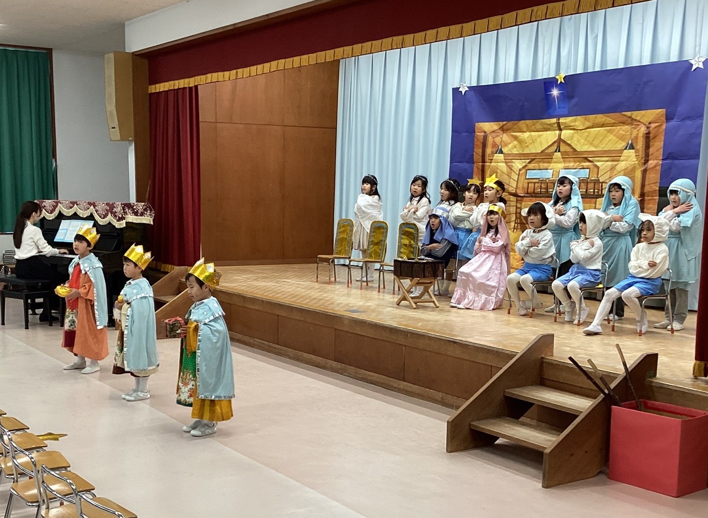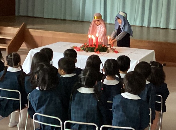 3本目の赤いろうそくに火がともり、戸頭幼稚園は12月5日がクリスマス会です。