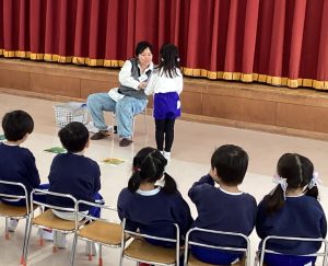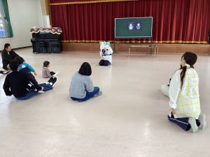 1月22日、りす組とひまわり組、さくら組の英語遊びをおうちの人に見てもらいました。