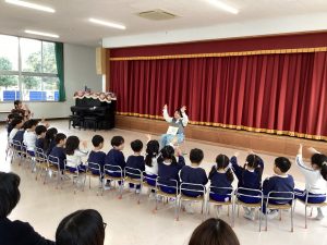 1月28日、今日の英語遊びはうさぎ組とほし組の保護者の方に参観をしてもらいました。